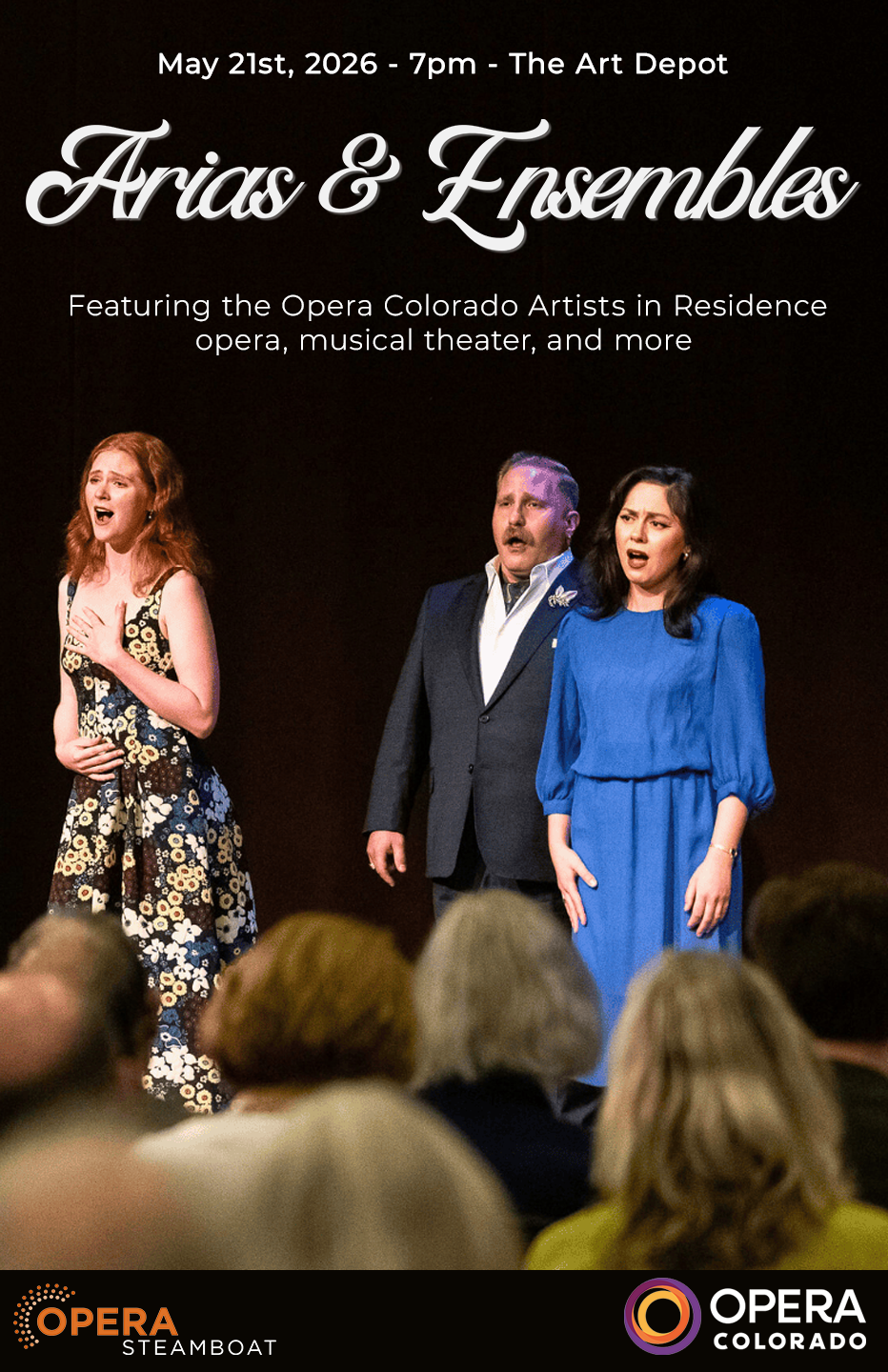Opera Steamboat is delighted to present an unforgettable evening of live opera at the Art Depot on May 21, 2026, featuring two distinct performances from Opera Colorado’s Opera on Tour and Arias & Ensembles programs.