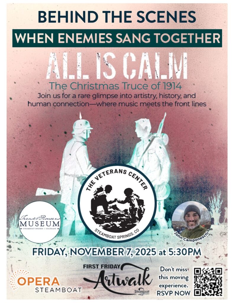 - A special guest artist giving a taste from Opera Steamboat’s upcoming production of All Is Calm